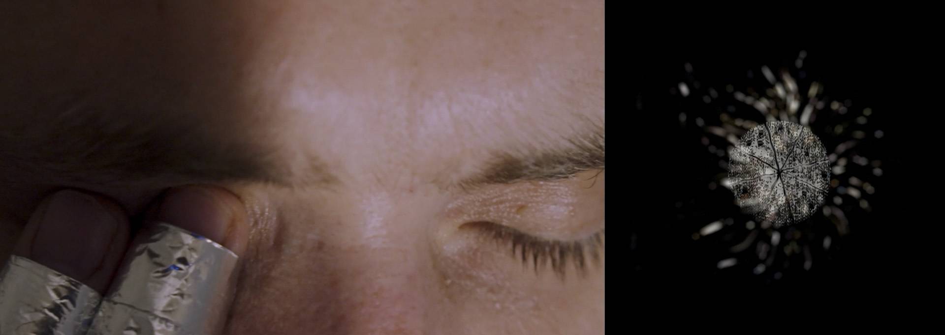 The second part of the video installation works with the performativity of cinematic language, introducing the audience to the body as technology through a series of detailed shots. A technology that is, through embodied images, constantly moulding the human body, making it more effective and thus influencing the human subject. Stimulation of the eye, i.e. phosphenes brought about artificially, is an example of a possible agent influencing our perception. The drawings of phosphenes become images of an external pressure we have learned to accept as given.